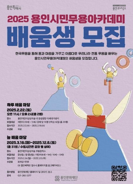 용인문화재단 관계자는 “2025년 봄을 맞이해 새롭게 출범하는 용인시민무용아카데미 프로그램이 용인 시민들의 문화예술 활동에 싹을 틔우는 씨앗이 되기를 바란다”라며, “재단은 이와 같이 시민과 함께 호흡하는 다양하고 신선한 즐거움을 주는 문화예술 서비스를 지속적으로 개발해 나갈 것”이라고 말했다.