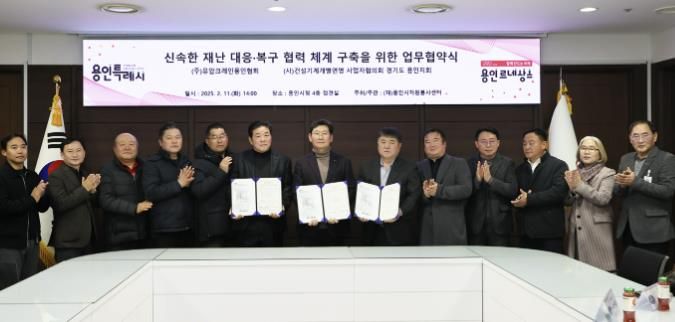 한방통신사 신유철기자 기자 | 용인시자원봉사센터와 ㈜유압크레인용인협회, (사)건설기계개별연명사업자협의회 경기도 용인지회가 신속한 재난 대응과 복구 협력 체계구축을 위한 업무협약을 11일 체결했다.