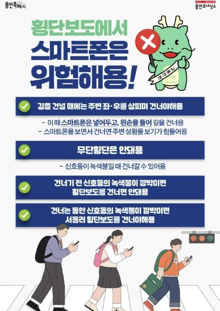 이상일 시장은 "개학을 앞두고 초등학교 등 학교 앞 통학 환경을 치밀하게 점검하고 안전을 위한 시설도 보강하고 확충할 방침"이라며 "학생들이 보다 안전하게 등하교할 수 있도록 올해에도 예산을 투입해 통학안전을 위한 사업을 속도감있게 진행할 것"이라고 말했다.