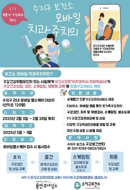 사업에 대한 내용은 수지구보건소 구강보건센터에 전화하거나, 용인특례시 보건소 홈페이지에서 확인할 수 있다.