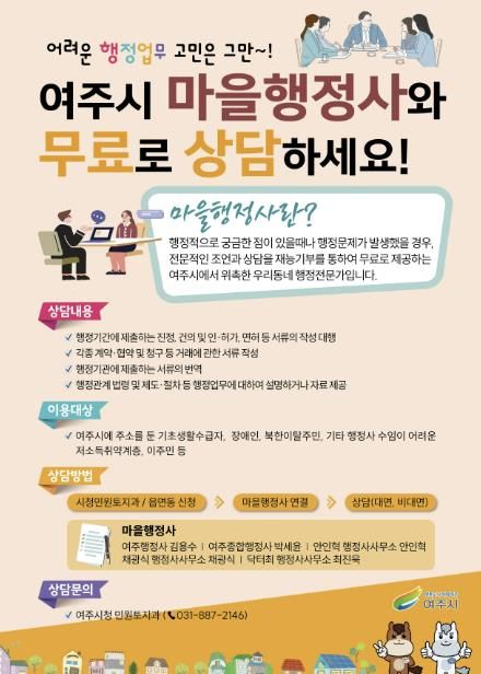한방통신사 신유철기자 기자 | 여주시 민원토지과는 취약계층을 위한 무료상담서비스를 제공하는 마을 행정사 서비스를 운영한다