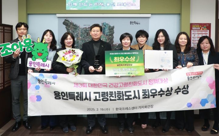 19일 오후 4시 프레스센터 19층 기자회견장에서 열린 시상식에는 용인시와 관련기관 관계자들이 참석했다. 용인특례시는 지난해 5월 세계보건기구(WHO) 고령친화도시 국제네트워크 가입과 적극적인 고령친화정책 추진 노력 등을 인정받아 최우수기관에 선정됐다.
