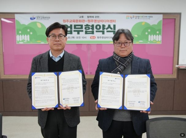 한방통신사 신유철기자 기자 | 원주교육문화관(관장 유선종)과 원주영상미디어센터(센터장 김동규)가 지역사회의 문화미디어 교육 활성화를 위해 2025년 2월 20일에 업무협약(MOU)을 체결했다.