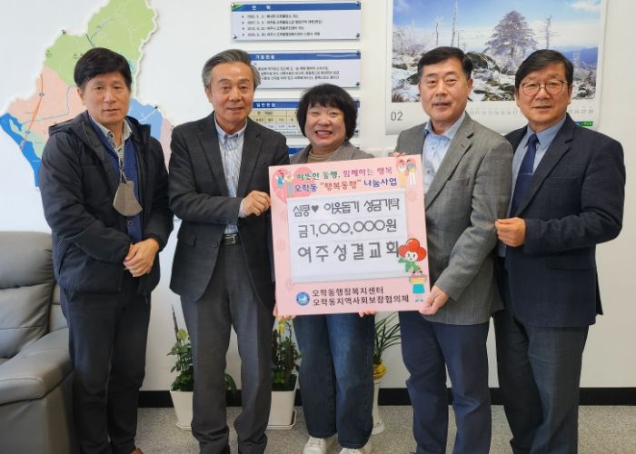 김병선 오학동장은 "매년 꾸준히 나눔을 실천해주시는 여주성결교회의 따뜻한 마음에 감사드린다"며 "기탁된 성금은 꼭 필요한 이웃들에게 전달해 모두가 희망을 키우는 동네가 될 수 있도록 최선을 다하겠다"라고 밝혔다.