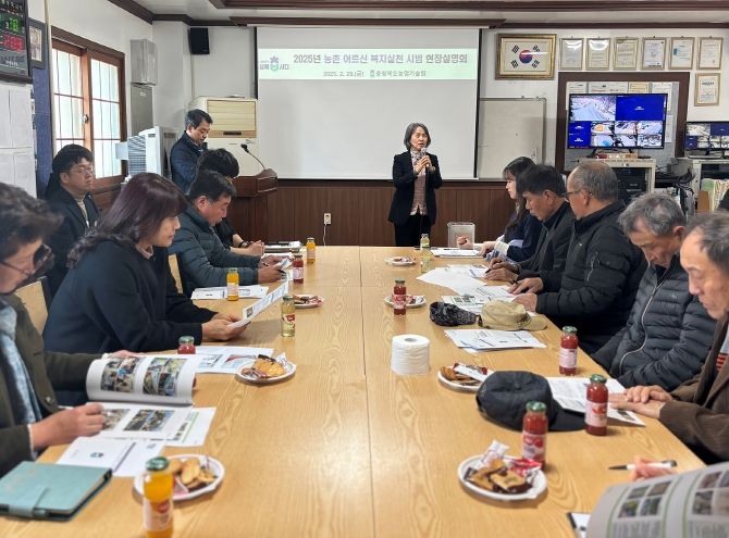 한방통신사 권영분기자 기자 | 충북농업기술원은 28일 영동읍 주곡리 마을 경로당에서 ‘농촌 어르신 복지 실천’ 시범 사업 현장 설명회를 시군별 마을 대표와 담당 공무원 30여 명이 참석한 가운데 개최했다고 밝혔다.