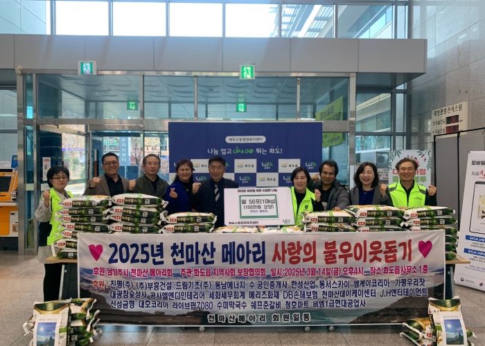 올해 1월 창설된 천마산메아리회는 화도·수동 지역 업체 대표들로 구성된 친목 봉사단체로, 이번 쌀 후원을 시작으로 지역사회 발전을 위한 나눔과 봉사활동을 지속적으로 추진할 예정이다.