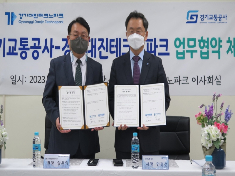 경기교통공사와 경기대진테크노파크가 교통분야에 우수기술을 가진 경기북부지역 창업기업 지원을 위한 협력을 다짐했다.