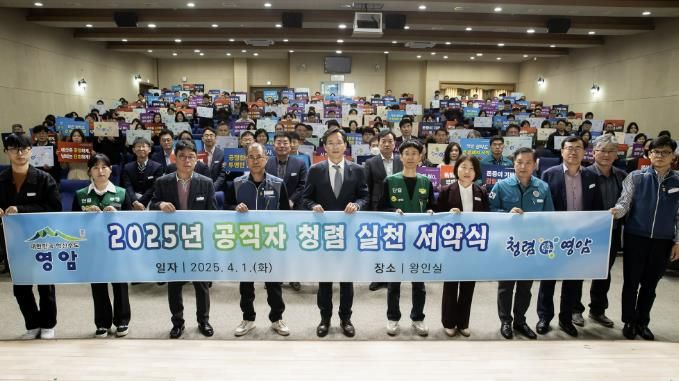 한방통신사 신다은기자 기자 | 영암군 공직자들이 1일 군청에서 ‘청렴한 영암이 좋아요’ 캠페인을 열고, 청렴한 조직문화 확산·정착 실천을 서약했다.