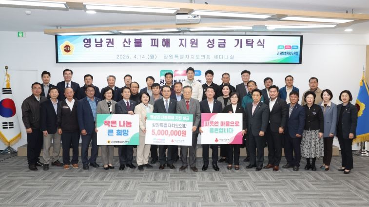 한방통신사 신유철기자 기자 | 강원특별자치도의회는 최근 영남 지역에서 발생한 대형 산불로 피해를 입은 이재민들을 돕고, 복구를 지원하기 위해 성금 500만 원을 강원사회복지공동모금회에 기탁했다고 14일 밝혔다.