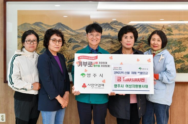 이재훈 영주시장 권한대행은 “지역사회의 어려운 이웃을 먼저 생각하며 마음을 모아주신 권오순 대장님과 여성자원봉사대 회원분들께 진심으로 감사드린다”며, “기탁해 주신 성금은 경북사회복지공동모금회를 통해 피해 지역의 복구와 이재민들의 일상 회복을 위해 소중히 사용하겠다”고 전했다.