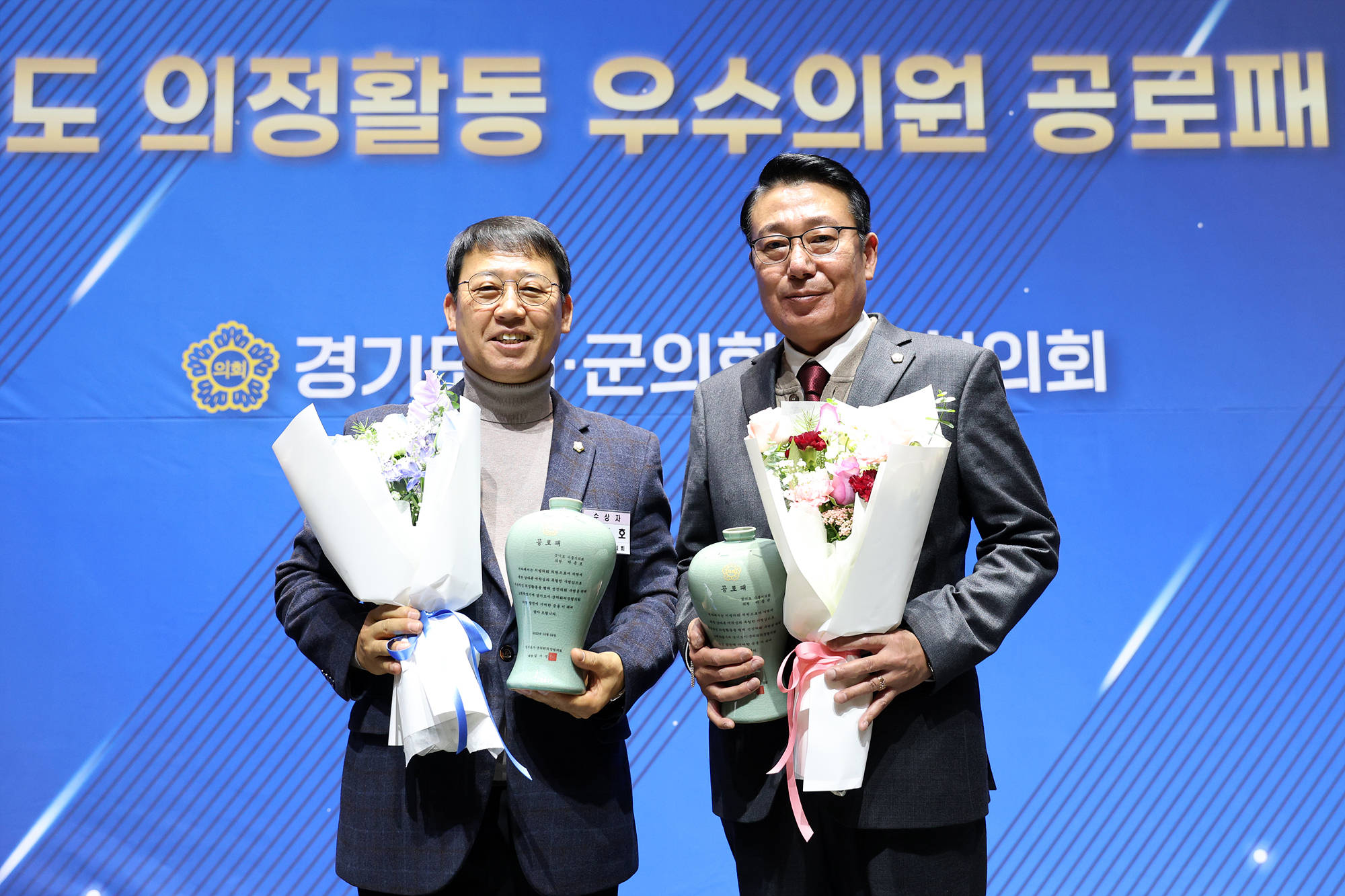 경기 시흥시의회 박춘호 자치행정위원장과 이봉관 의원이 12월 29일 경기도시·군의장협의회로부터 우수의원 공로패를 받았다.