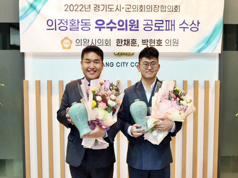 한채훈, 박현호 의원은 제9대 의왕시의회에서 젊은 초선 의원으로서 예산결산특별위원회 간사(한채훈 의원)와 인사청문특별위원회 간사(박현호 의원)를 맡아 원활한 의정활동을 수행했으며, 특히 두 의원은 시민들이 어려움을 겪는 여러 가지 제도적 문제점을 파악하여 적극적으로 해결하려는 노력을 기울여 바람직한 의회 의원상을 정립하는데 기여한 공을 인정받았다.