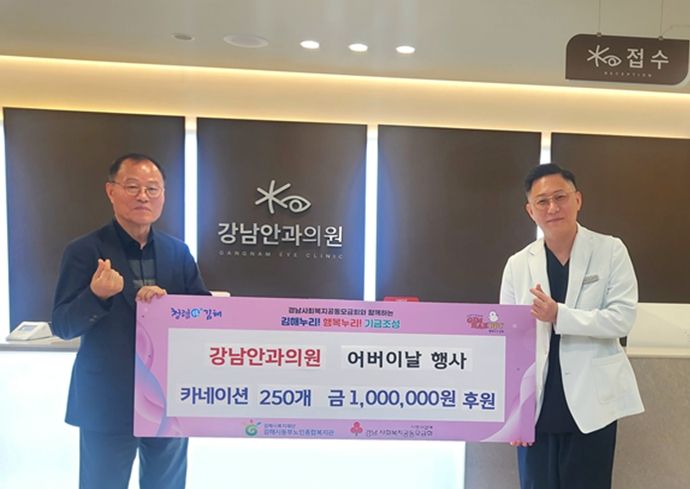 한방통신사 신유철기자 기자 | (재)김해시복지재단(대표이사 임주택), 김해시동부노인종합복지관(관장 정순미)에서 지난 25일 금요일 강남안과의원(원장 박기범) 제53회 어버이날을 맞이하여 카네이션 250개 금100만원 상당의 후원 전달식을 진행했다.