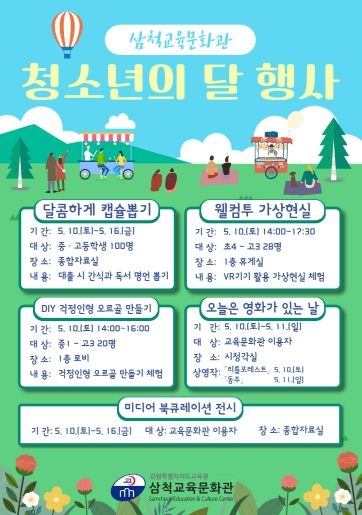 한방통신사 신유철기자 기자 | 삼척교육문화관은 5월 10일부터 5월 16일까지 종합자료실에서 청소년의 건전한 스트레스 발산과 교육문화관에 대한 친근감 확대를 위하여 2025년 청소년의 달 행사를 운영한다.