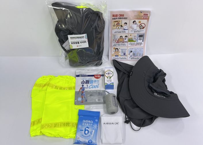 광주시는 7월부터 지역 폐지 수집 어르신 600여명을 대상으로 차양모자, 형광토시, 쿨링물티슈, 쿨타월, 쿨파스, 벌레약, 폭염 행동요령 안내문 등이 포함된 보호용품 꾸러미를 배부한다.