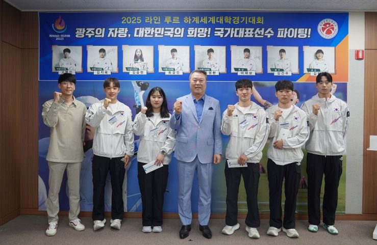 한방통신사 김성의 기자 | 광주광역시체육회(회장 전갑수)가 세계 대학생들의 스포츠 축제인 ‘2025 라인-루르 하계세계대학경기대회(유니버시아드)’에 참가하는 광주 소속 선수단을 격려했다.