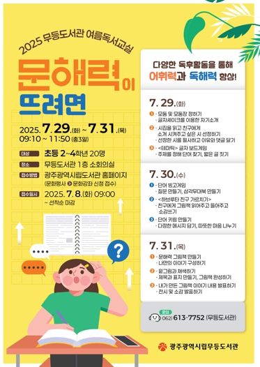 한방통신사 김성의 기자 | 광주광역시는 여름방학을 맞아 시립도서관 3곳에서 초등학생을 대상으로 하는 체험형 독서 프로그램인 ‘여름독서교실’을 29일부터 31일까지 운영한다.