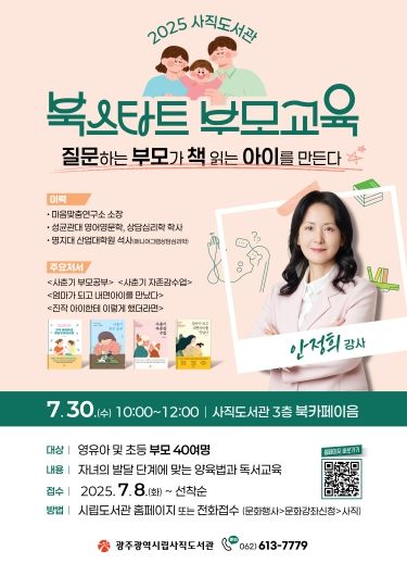 한방통신사 김성의 기자 | 광주광역시립사직도서관은 8일부터 자녀의 발달 단계에 맞는 양육법과 독서 지도법을 교육하는 ‘북스타트 부모교육 특강’ 참여 신청을 받는다.