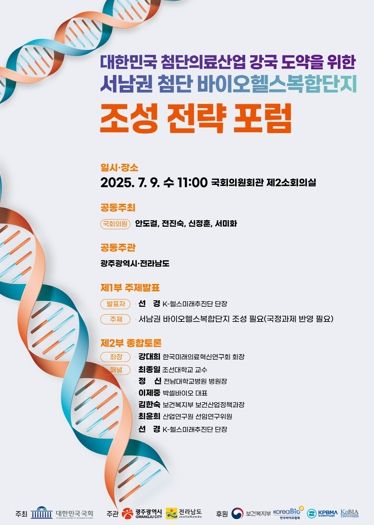 광주광역시는 9일 오전 11시 서울 여의도 국회의원회관 제2소회의실에서 ‘서남권 첨단 바이오헬스복합단지 조성전략 포럼’을 개최한다고 7일 밝혔다.