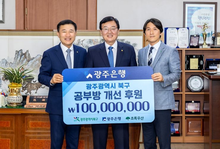 한방통신사 김성의 기자 | 광주은행(은행장 고병일)은 지난 4일, 광주광역시 북구청(구청장 문인)에 ‘희망이 꽃피는 공부방’ 사업을 위한 후원금 1억 원을 전달했다고 밝혔다.