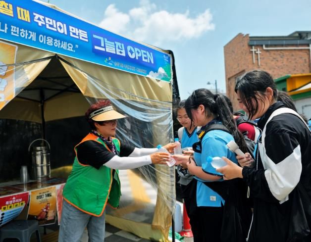 한방통신사 김성의 기자 | 광주 광산구 송정1동이 연이은 무더위에 지친 이동 노동자들과 도심 속 보행자들을 위해 그늘집을 운영해 눈길을 끌고 있다.