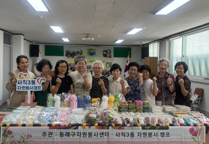 한방통신사 신유철기자 기자 | 부산 동래구 사직3동 자원봉사캠프‘봄미소 핸드메이드 봉사단' 은 지난 7월 11일 사직3동 행정복지센터에 출산장려물품 7종 335개를 전달했다.