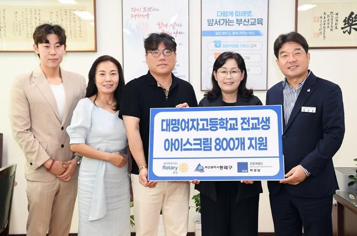 한방통신사 신유철기자 기자 | 부산 동래구는 지난 14일 부산마린시티로타리클럽이 동래구 소재 대명여자고등학교 재학생 2명에게 상·하반기로 나누어 1인당 연 60만원의 장학금을 지원하고, 전교생이 무더운 여름을 날 수 있도록 아이스크림 800개를 지원했다고 밝혔다.