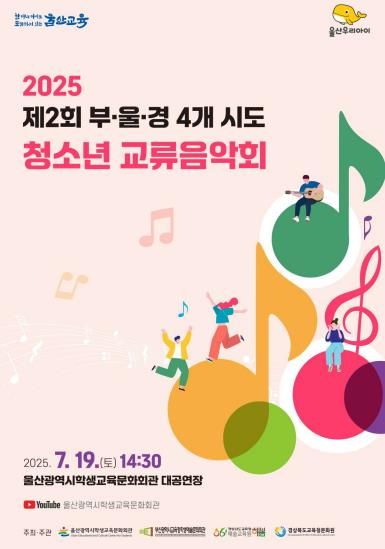 이해선 학생예술문화회관장은 “올해로 두 번째를 맞은 부·울·경 청소년 교류음악회를 통해 지역 간 예술 교류가 더욱 활발해지고, 학생들이 더욱 성장하길 바란다”며 “앞으로도 청소년들이 음악을 통해 예술적 감수성과 사회적 책임감을 키워갈 수 있도록 지속적으로 지원하겠다”고 말했다.