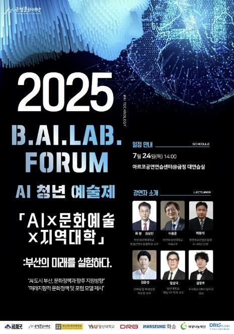 한방통신사 신유철기자 기자 | 부산시 금정구 금정문화재단은 오는 7월 24일 오후 2시, 아르코공연연습센터@금정 대연습실에서‘2025 B.AI.LAB. FORUM’을 개최한다고 밝혔다.