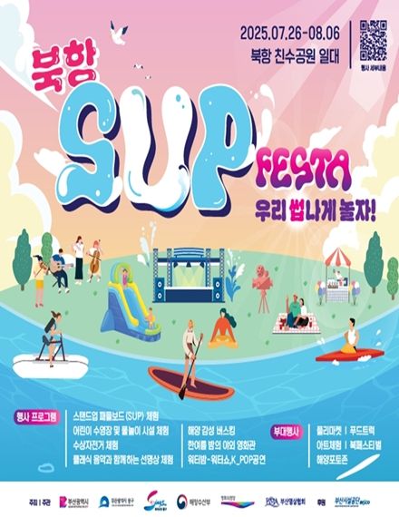 부산시는 오는 7월 26일부터 8월 6일까지 총 12일간 ▲중구 ▲동구 ▲해양수산부 ▲영화의전당 ▲부산명상협회와 함께 '북항 썹 페스타(SUP FESTA) – 우리 썹나게 놀자!'를 북항 친수공원 일원에서 개최한다고 밝혔다.