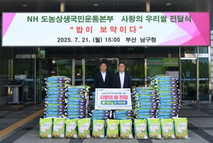 한방통신사 신유철기자 기자 | NH도농상생국민운동본부는 2025년 7월 21일, 우리쌀 1,600kg을 부산 남구에 기부하며 지역사회 상생을 위한 사회공헌활동을 이어갔다.