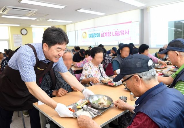 이번 행사는 일주일 후로 다가온 중복을 맞아 마련된 것으로, 복지관 이용자 300명에게 삼계탕과 영양갱, 수박 등으로 구성된 여름맞이 무료급식을 제공하고, 복지관 1층에서는 음료 나눔과 선물 증정 이벤트도 진행하여 무더위를 잊을 수 있는 시간을 선사했다.