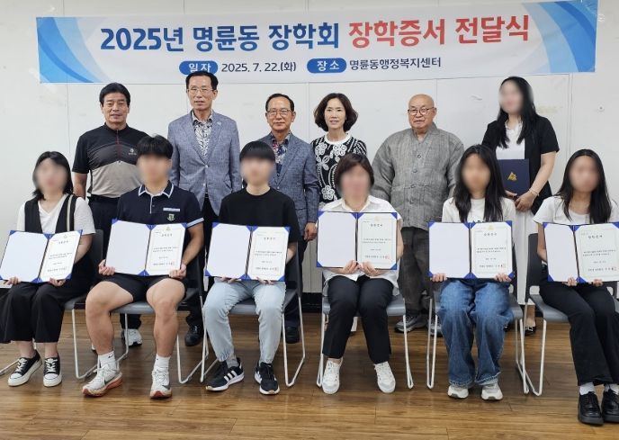 한방통신사 신유철기자 기자 | 부산 동래구 명륜동 장학회는 지난 22일 명륜동 행정복지센터 3층 회의실에서 '2025년 명륜동 장학회 장학증서 전달식'을 개최하고, 관내 중·고등학생 6명(각 50만원), 대학생 3명(각 200만원)에게 총 900만원의 장학금 및 장학증서를 전달했다.