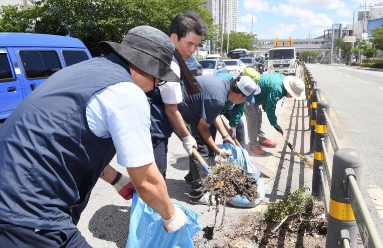 이번 정비 활동은 최근 개설된 인도와 중앙분리대 하단부에 쌓인 각종 오물 및 잡초 제거를 통해 공사로 자칫 지저분해 보이기 쉬운 도심 환경을 한층 깨끗하게 정비하는 데 중점을 두었다.