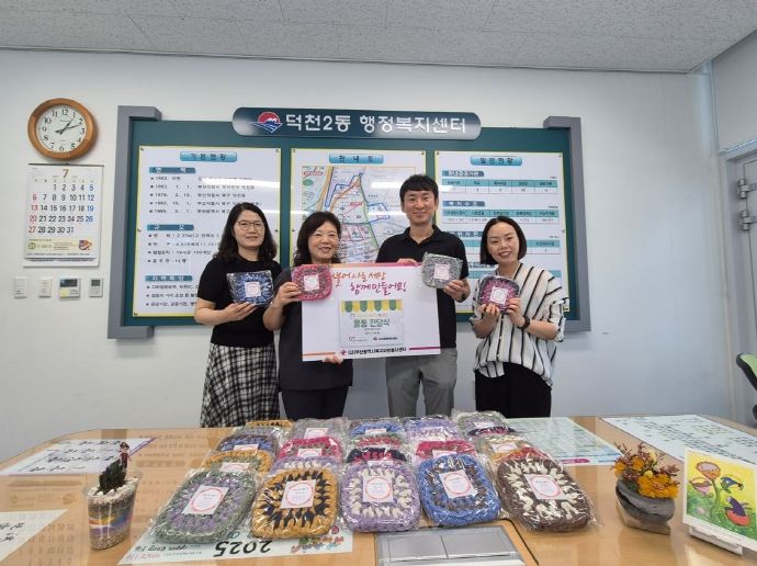 한방통신사 신유철기자 기자 | 부산 북구 덕천2동 행정복지센터(동장 문옥희)는 지난 7월 27일, 부산광역시북구자원봉사센터 러브핸드메이드봉사단(회장 장계남)으로부터 정성스럽게 제작한 냄비받침대 30여 개를 기탁받았다고 밝혔다.