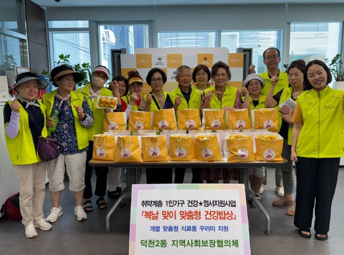 한방통신사 신유철기자 기자 | 덕천2동 행정복지센터는 덕천2동지역사회보장협의체(위원장 황동인)에서 지난 29일 관내 취약계층 20세대에 복날을 맞이하여 ‘맞춤형 건강밥상’ 식료품 꾸러미를 전달하며 무더위 이웃들의 안부를 살폈다고 밝혔다.