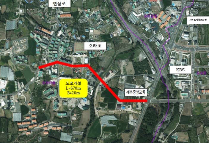 해당 구간은 오라초등학교부터 오남로를 연결하는 연장 670m, 폭 20m의 왕복 2차선 도로로, 1999년 최초 도시계획도로로 결정됐으나 장기간 개설되지 않아 주민들이 통행에 큰 불편을 겪어온 곳이다.