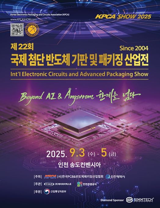 한방통신사 신유철기자 기자 | 인천광역시는 오는 9월 3일부터 5일까지 송도컨벤시아에서 국내 최대 반도체 패키징(후공정) 산업 전시회인 ‘KPCAShow 2025 국제첨단반도체기판 및 패키징산업전’이 개최된다고 밝혔다.