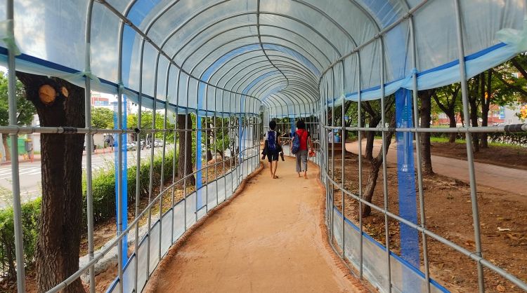 총 길이 820m 규모로 조성됐으며, 특히 70m 구간은 비닐하우스 구조로 설계돼 비가 오거나 겨울에도 날씨에 구애받지 않고 맨발걷기를 즐길 수 있는 전천후 공간으로 마련돼 주민들의 호응이 기대된다.