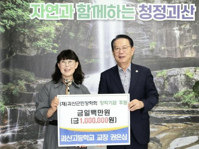 송인헌 군수(괴산군민장학회 이사장)는 “귀중한 뜻을 모아주신 권은심 교장 선생님께 깊이 감사드린다”며 “기탁해주신 장학금은 지역 인재 양성과 교육 발전을 위해 소중히 사용하겠다. 앞으로도 괴산고등학교가 명문교로 자리매김할 수 있도록 적극 지원하겠다”고 밝혔다.