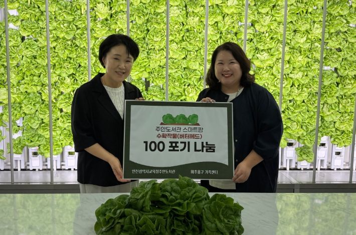 한방통신사 신유철기자 기자 | 인천광역시교육청주안도서관은 2일 미추홀구가족센터에 스마트팜에서 재배한 버터헤드 100포기를 기증했다고 밝혔다.