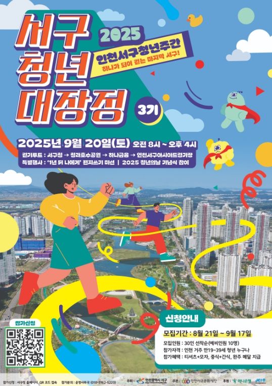 한방통신사 신유철기자 기자 | 인천 서구는 오는 20일 청년의 날을 기념하여, 청년들과 함께 ‘서구 대장정’에 나선다고 3일 밝혔다.