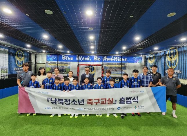 한방통신사 신유철기자 기자 | 인천광역시는 인천통일플러스센터는 ‘남북청소년 축구교실’본격 운영에 앞서 9월 3일 오후 2시, 인천유나이티드아카데미 논현지부 풋살축구장에서 출범식을 개최했다고 밝혔다.