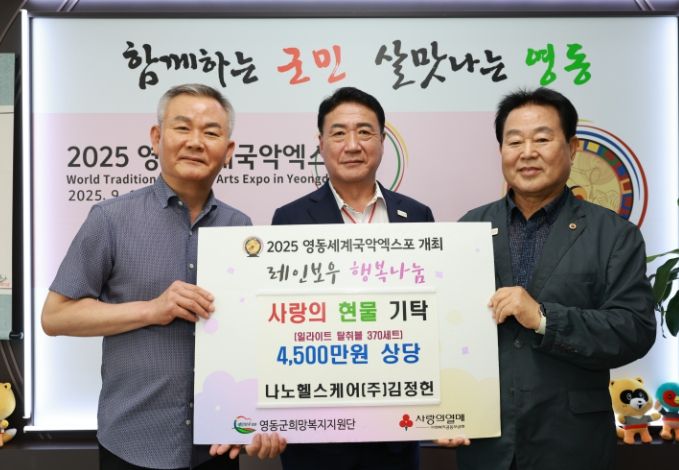 한방통신사 권영분기자 기자 | 나노헬스케어(대표 김정헌)는 3일 영동군청을 방문해 일라이트 탈취볼 370세트 (4.4톤, 4,500만 원 상당)을 기탁했다.