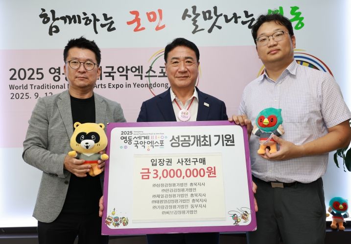 한방통신사 권영분기자 기자 | 감정평가법인 6개소는 4일 영동군청을 방문해 2025 영동세계국악엑스포의 성공 개최를 기원하며 300만 원 상당의 입장권을 사전 구매했다.