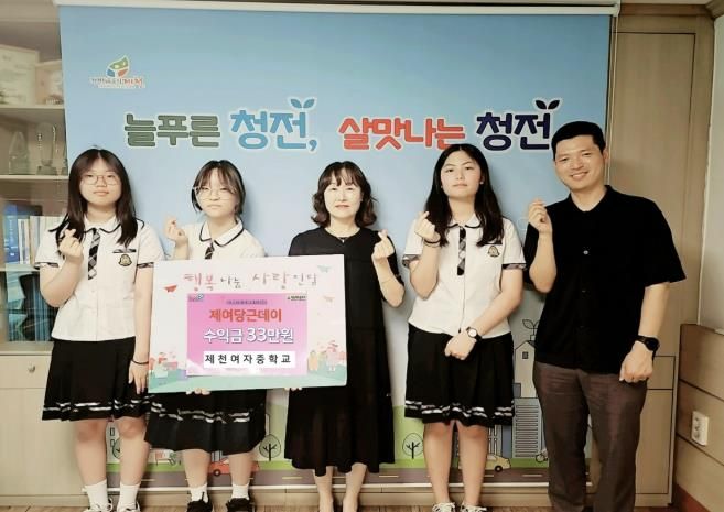 한방통신사 권영분기자 기자 | 제천여자중학교가 지난 2일 이웃돕기 성금 33만 원을 청전동행정복지센터에 전달했다.