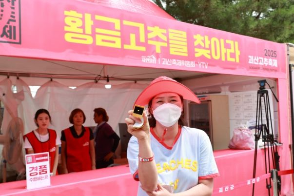 한방통신사 권영분기자 기자 | 2025년 9월 4일, 충북 괴산 유기농엑스포 광장에서 열린 ‘2025 괴산고추축제’의 대표 프로그램 ‘황금고추를 찾아라’가 관람객들의 뜨거운 호응 속에 진행됐다.