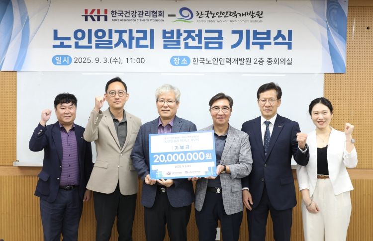 한방통신사 신유철기자 기자 | KH한국건강관리협회가 9월 3일 한국노인인력개발에 어르신들의 삶의 질 향상과 건강한 노후 증진을 위한 후원금 2천만 원을 전달했다.