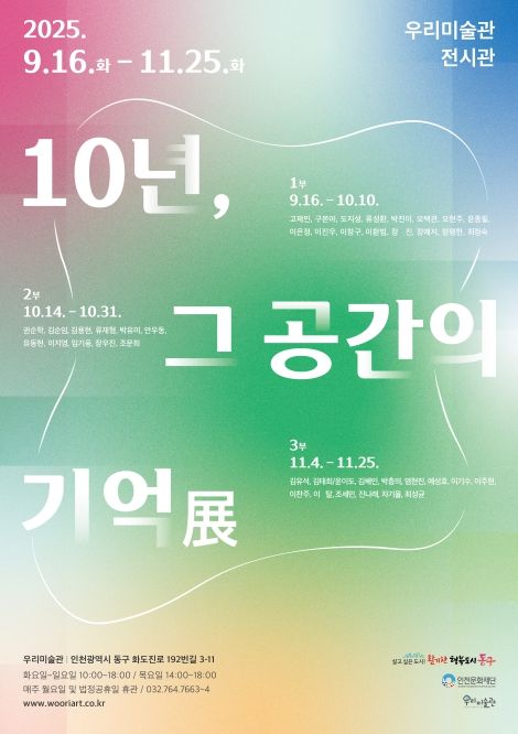 한방통신사 신유철기자 기자 | 인천 동구 우리미술관은 오는 9월16일~11월25일까지 '10년, 그 공간의 기억' 전시를 개최한다고 밝혔다.