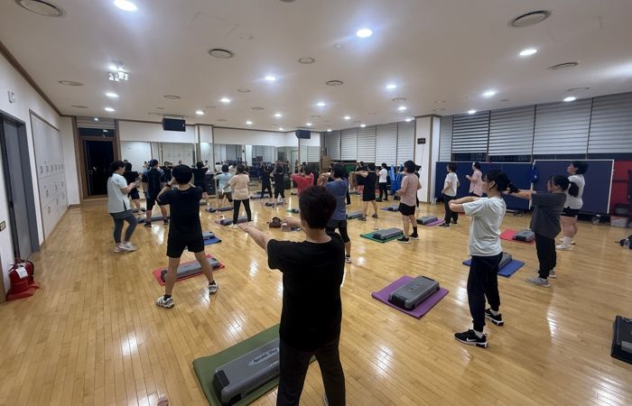 참여자들은 경쾌한 음악과 함께 스텝박스를 활용한 고강도 유산소 운동과 짐스틱 등을 활용한 근력·유연성 운동을 병행한다.